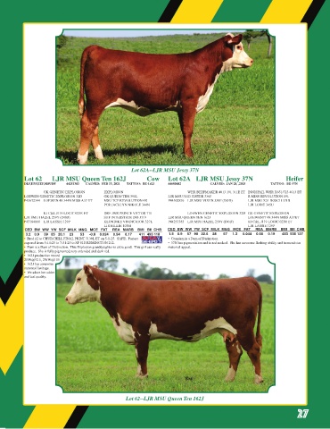 Lot 62 LJR MSU Queen Ten 162J Cow Lot 62A LJR MSU Jessy 37N Heifer